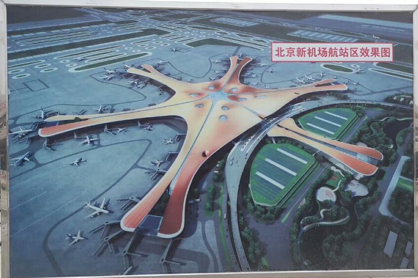 北京大興國際機場是2014年12月15日,國家發(fā)改委批準北京建設(shè)新機場項目,具體位置位于大興區(qū)榆垡鎮(zhèn)、禮賢鎮(zhèn)與廊坊市廣陽區(qū)交界處,此工程投資799.8億元,規(guī)劃建設(shè)7條跑道,將建設(shè)4條跑道、150個機位的客機坪、24個機位的貨機坪、14個機位的維修機坪;建設(shè)70萬平方米的航站樓,主樓、指廊分別滿足7200萬和4500萬人次使用需求,總共滿足年旅客吞吐量1億人次需求。
